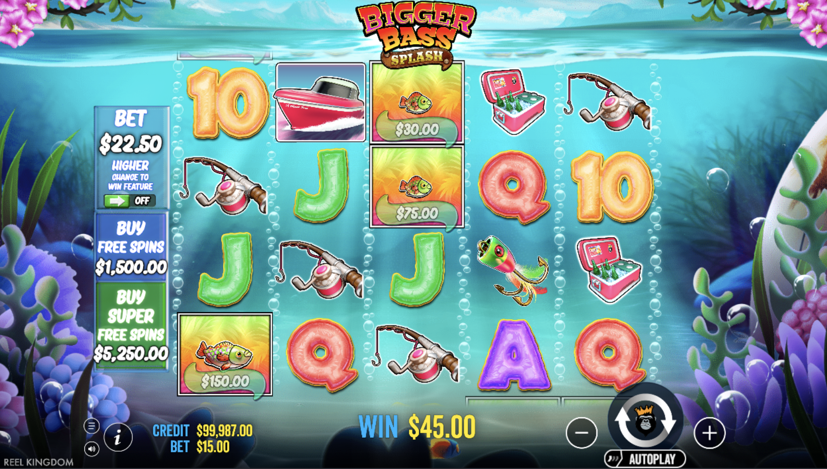 Bigger Bass Splash se desfășoară pe un format de cinci pe trei, cu zece rute pentru câștiguri care se citesc de la stânga la dreapta, unde simboluri precum unelte de pescuit, lăzi și creaturi marine se adună pentru a crea momente satisfăcătoare, ajutate de un simbol pescar util în timpul momentelor bonus. Apreciem o structură curată, dar primitoare, care menține lucrurile lizibile, netezind combinațiile și susținând rezultatele.